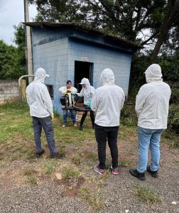 Durante a ação, as equipes realizam visitas casa a casa, busca ativa de casos suspeitos e positivos da doença, verificação dos quintais, aplicação de larvicidas, quando necessária, retirada dos materiais inservíveis e entrega de telas milimétricas.